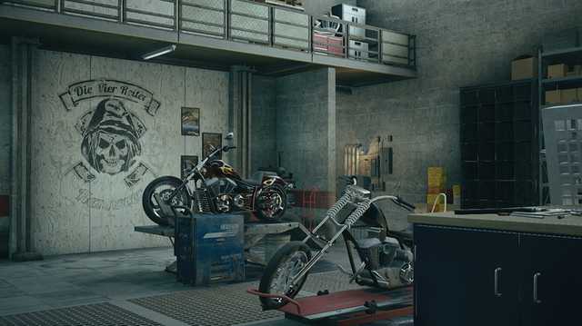 The inside of the map is littered with references to the TV series Son’s of Anarchy, for example the logo displayed in the garage is very similar.